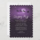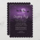 Invitación a una fiesta de Navidades morados con un paisaje invernal con Santa Claus y renos y estrellas pequeñas.