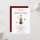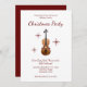 Invitación del Partido de los Navidades Musicales, con un diseño de violín y guión en un fondo blanco. Con letras de tipografía de personalizable rojo, puede agregar su propia información. La parte posterior tiene un color rojo coincidente como acento. Una forma especial de organizar una fiesta tradicional con un toque de música clásica.