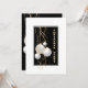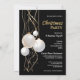 Invite a sus huéspedes con esta moderna invitación a la fiesta de los Navidades blancos y negros, que incluye elegantes cintas doradas y blancas y baubles. Esta invitación es apta para celebraciones de Navidades corporativos y familiares.