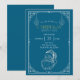 Vintage Navidades de Santa Claus Fiesta, invitación azul y blanca. Personalizar con sus detalles específicos. Derechos de autor Auge en estilo Diseños LLC.