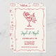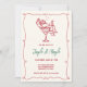 Una caprichosa invitación de Navidades Jingle & Mingle para reuniones en casa o de trabajo. Con un Santa rojo dibujado a mano en una copa de cóctel sobre un fondo de marfil.