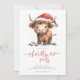 Fiesta de Navidades de vacas de Santa Highland. Disponible digitalmente e impreso. La amabilidad festiva, con este divertido diseño con una dulce vaca de las tierras altas en su sombrero de Santa. El Fiesta de navidades está en un guión moderno. Personaliza fácilmente el resto del texto a tus detalles.