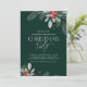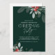 Moderna invitación para fiestas de Navidades de oficina con elegantes plantas invernales y bayas. El fondo verde oscuro se acentúa con un texto de estilo escrito a mano de tendencia blanca.