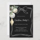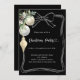 Para un fiesta Navidad con familia y amigos. Decorada con un arco blanco y simple dibujado a mano, baubles blancos y dorados. Personalice y agregue los detalles. Navidades fiesta con corazón. Fondo negro.