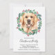 Invite a sus amigos y familiares a sus Navidades o a la fiesta de vacaciones con este elegante recuperador de oro Navidades en una carta de diseño de corona, y decoración a juego. Esta tarjeta de vacaciones de recuperación dorada cuenta con un perro acuarela en una corona verde y roja con bayas y heces. Personalice con todos los detalles de su fiesta navidad . Esta invitación a navidades recuperadores de oro será una de las favoritas de los amantes de los recuperadores de oro, los amantes de los perros y los amantes de los animales. Visite nuestra colección para ver tarjetas de navidades de recuperación dorada, decoración y regalos. DERECHOS RESERVADOS © 2020 Judy Burrows, Black Dog Art - Todos los derechos reservados. Invitación a la fiesta de Navidades de perro elegante de Golden Retriever