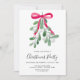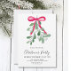 Invite a su familia y amigos a su Fiesta Navidad con esta invitación festiva. Está decorado con mistletoe verde acuarela, cinta roja y tipografía de escritura elegante. Personalizable fácil. Acuarela original © Michele Davies.