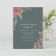 La invitación a la fiesta de los Navidades incluye elegantes flores y pinos de color rojo y verde con una moderna fuente minimalista serif y un bosque de fondo verde. Edite todo el texto para satisfacer las necesidades de su evento. Los colores de fuente son 100% editables. Esta invitación puede ser utilizada para cualquier evento y es perfecta para su evento temático de invierno.