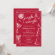 Invitación a la fiesta navideña de los Navidades Red Disco Martini Jingle & Mingle - Celebre la temporada con esta invitación de fiesta de Navidades groovy de inspiración retro, original, dibujada a mano y escrita a mano. Con una vibrante paleta de colores rojos y rojos monocromos, colores Navidades clásicos. Íconos fiestas extravagantes y divertidos como una bola de disco, martini sucio con dos aceitunas, vino o copa de champán con arco de coqueta, Navidades de arte en línea pino y estrellas brillantes hacen de esto una invitación divertida y festiva para fiestas. Personalizar esta plantilla de invitación de grupo de Navidades editable con sus propios detalles de evento. Disponible en papel o como plantilla digital, enviarlo fácilmente por correo de texto o medios sociales para una opción ecológica.