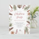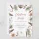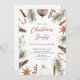 Invitación del Partido Navidades de vacaciones con Navidades de acuarela enmarcados con conos de pino, adornos de caña de caramelo y bayas de Navidad.