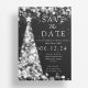 Elegante Fiesta de Navidades / Fiesta de invierno / Fiesta de vacaciones / Fiesta de Navidades corporativos invitación "Guardar la fecha" con árbol de Navidad plateado sobre fondo negro.