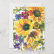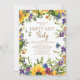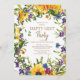 Flores de primavera de color amarillo, azul y morado coloridas sobre la invitación blanca Empty Nest Party con un hermoso tipo de letra de guión de caligrafía. La parte trasera de esta tarjeta es una floral a juego. Celebra la salida de su último hijo del nido con un Fiesta de Nido Vacío. Póngase en contacto con nosotros para obtener ayuda sobre la personalización o para solicitar productos coincidentes.
