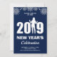 Invite a tus invitados con esta moderna invitación de fiesta de Nochevieja con una tipografía alegre de 2019. Simplemente agrega los detalles de tu evento en esta plantilla fácil de usar para hacer que sea una invitación única.