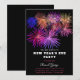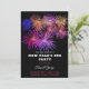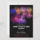 Una invitación moderna y elegante de Nochevieja con fuegos artificiales coloridos sobre un fondo negro. Esta tarjeta de invitación colorida captura el espíritu de la Nochevieja. Perfecta para invitar a amigos y seres queridos a celebrar la Nochevieja.