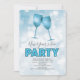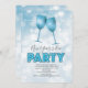 FIESTA en luces de estilo marqués, anteojos y fondo azul de bokeh. Personalice el texto para su propio tipo de fiesta.