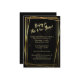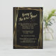 Un marco moderno de triple oro sobre fondo negro espolvoreado con brillo fino de oro hace una invitación simple, minimalista y muy elegante para una fiesta de Nochevieja. También podría utilizarse para cumpleaños importantes, aniversarios de bodas de oro y más.