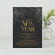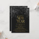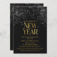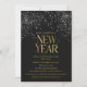 Invitación Fiesta de Nochevieja de Confetti Negro de Oro