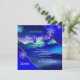 Invitación a la fiesta de Navidad / vacaciones de la aurora borealis mágica. Elegante plantilla de invitación a la fiesta de Navidad con decoraciones de Navidad azules y doradas. Esta hermosa invitación a la fiesta de Navidad corporativa o familiar azul y blanca se personaliza fácilmente aquí para tu fiesta simplemente eligiendo el botón "¡Personalízala!" para comenzar a agregar tu texto. Invitaciones a la fiesta de Nochevieja.