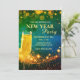Elegante Invitación de Año Nuevo en Dorado y Azul - Diseño Personalizado con Champán y Brillo