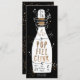 Burbujas de oro y acentos con la invitación "pop fizz clink" de la botella de champán. Blanco negro y oro divertido pero elegante invitación de años nuevos.