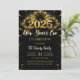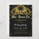 Invitación de Purpurina negro y oro de Año Nuevo Fiesta