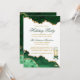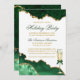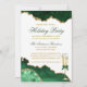 Moderna y elegante acuarela Marble verde Esmeralda y oro Agate Geode Tarjeta de invitación de fiesta de vacaciones - fondo blanco con guión de oro. Vidrio de champagne con Bow.