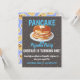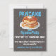 Invitación de cumpleaños a doble cara para fiesta de panqueques y pijamas.