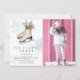 Esta retro y elegante "fiesta de patinaje sobre hielo" invitación para la foto de cumpleaños incluye un fondo blanco helado de nieve con un par de patines de hielo y falsos copos de nieve de plata. El reverso presenta un fondo azul con patrones de nieve blancos. Personalice sus necesidades. Puedes encontrar más productos a juego en mi tienda.