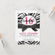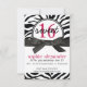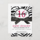 Invitar a amigos y familiares a una dulce fiesta especial de chica dieciséis años con esta divertida y salvaje invitación de cebra! Dulce y suave rayas de cebra en blanco y negro con un estilo de cinta y arco de estilo purpurinoso negro y plateado, y doble círculo de anillo con texto negro y vibrante rosado caliente anunciando un dulce 16. Cuatro áreas de texto personalizables para la información de su fiesta.
