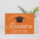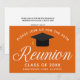 Una elegante invitación a una reunión de clase personalizado en naranja y blanco para una escuela secundaria, universidad o universidad. Personalizar con el nombre de su escuela y clase de graduación bajo la elegante caligrafía para una gran invitación personalizada de celebración de ex alumnos.