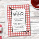 Invite a sus huéspedes a su fiesta de picnic BBBQ con esta invitación clásica con un patrón de cheque de gingham rojo y blanco con hormigas picnicas.