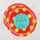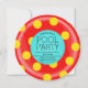 Divertido trozo de la banda cortada alrededor de la piscina flotante del tubo interior invitación de la fiesta de la piscina en rojo y amarillo. Moderno y coqueto para un fiesta de piscina de verano adulto, fiesta de piscina infantil, fiesta de playa o piscina de barbacoa de cocina.