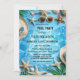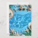 Invitación de fiesta de piscina con un diseño alegre y turquesa con estrellas de mar, sombreros de verano y gafas de sol alrededor de una piscina. Puedes agregar tu propia ocasión u otros textos. Esta invitación funciona bien tanto para una fiesta de adultos como para familias con niños.