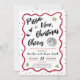 Invite a tus seres queridos a una celebración navideña festiva y divertida con esta elegante invitación de temática de pizza y vino. Con divertidos iconos dibujados a mano de pizza y vino, y caligrafía moderna, esta invitación es perfecta para reuniones informales, cenas navideñas o casas abiertas de Navidad con amigos y familiares.