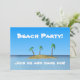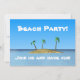 ¡Fiesta de playa! ¡Únete a nosotros y diviértete! Invitación calurosa para un fiesta de playa en verano. Cócteles, sol, gente feliz.
