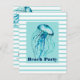 Invitación Fiesta de Playa de Medusas Acuarela Rayas Verde Az
