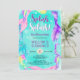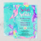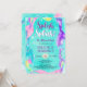 ¡Espléndido, Splash! ¡Es un golpe de sirena! Únete a nosotros para una divertida piscina o fiesta de playa para celebrar el cumpleaños de cualquier niño de la edad, con las sirenas acuáticas pintadas a mano en rosa, púrpura, holográfica, arcoíris, azul y verde con un falso purpurina de shimmer en un fondo oceánico de color azul con burbujas acuáticas y tipografía de escritura moderna.
