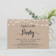 Fiesta de Hermoso Felices para Siempre, tarjeta de anuncio / invitación de boda íntima, en diseño rústico de granja Kraft, luces de cuerda. Esto es perfecto para la recepción de su boda y la fiesta de celebración después de la boda. Agregue sus datos en letra / caligrafía coincidente.