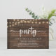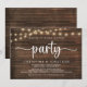 Anuncia y comparte tu felicidad para siempre con estilo con nuestra tarjeta de invitación de celebración de boda con diseño de tema de madera oscura rústica y cuerdas modernas (Fiesta Feliz para siempre) ideal para parejas que han decidido celebrar su mejor día. Con su diseño sofisticado y juguetón, esta invitación seguramente establecerá el tono para un evento inolvidable. La tarjeta de invitación presenta un tema de diseño de letra moderna y minimalista, agregando un toque de elegancia atemporal a tu celebración. Diseñado por TeeshaDerrick