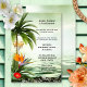 Invitación a una fiesta de boda o post-boda con una playa tropical con palmeras, farolillos y coloridas flores exóticas, con vistas a un océano turquesa verde. Ideal para una recepción o para una celebración después del boda con temática tropical o de playa.