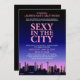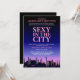 © Socialite Designs. Diseño de una buena soltera o un fiesta de lencería con estilo de invitación al cine-poster. Un horizonte nocturno en la ciudad del cielo con texto de diseño rosado. Personalice la información de su evento. ¿Necesita AYUDA con la personalización? Por favor, no dude en ponerse en contacto conmigo con sus necesidades.