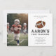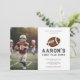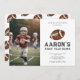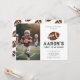 Invitación a la fiesta de cumpleaños número 1.ᵉʳ año de la foto de primer año inaugura tu pequeño novato al estilo con esta invitación a la fiesta de cumpleaños número 1. Celebra su destacado estatus como el "Rookie del Año" con esta invitación deportiva con temas de fútbol. Decorado con vibrantes tonos verdes y marrones que recuerdan al campo de fútbol, prepara el escenario para una animada celebración. Únete a nosotros en el inicio para una extravagancia de temas deportivos que promete diversión, golpes y recuerdos abundantes. Esta invitación a medida captura la esencia de un juego de fútbol americano, perfecto para el día especial de tu niñito. Prepárate para ganar y hacer de esta fiesta de primer cumpleaños un momento de toque final!