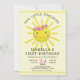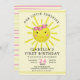 Invitación Fiesta de primer cumpleaños con sol amarillo