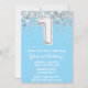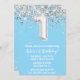 Invitación Fiesta de primer cumpleaños de Light Blue Silver