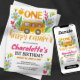 Prepárate para una divertida celebración de primer cumpleaños con esta adorable invitación de "Un Camper Feliz". Con una bonita camioneta amarilla rodeada de alegres flores silvestres, esta invitación es perfecta para un fiesta al aire libre. ¡personalizar con los detalles de tu fiesta y prepárate para celebrar!