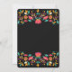 Colorida quinceañera "Save the Date", decorada con motivos florales mexicanos y con confeti dorado en las fronteras, con un bonito ilustracion de un descendiente rojo, una bonita rosa roja y un sombrero amarillo con un fondo negro.
