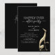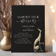 Elegante y chic, nuestra invitación de recepción de boda de 'Fiesta Felices para siempre' en negro combina un diseño minimalista con acentos góticos dorados y una tipografía de caligrafía de moda. Una elección moderna y sofisticada para tu celebración inolvidable.