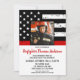 Celebra tu retiro e invita a amigos y familia a tu fiesta de retiro de bomberos con esta invitación a retiro de bomberos de la delgada línea roja - diseño de la bandera estadounidense en colores de la bandera de los bomberos , diseño angustiado . Personaliza con el nombre, el departamento de bomberos, la dirección y los detalles del rsvp. Esta invitación a la jubilación de bomberos se puede usar para graduarse como bombero, simplemente cambiar el texto al personalizar. Vea nuestra colección para encontrar regalos de retiro de bomberos, favores de partido y suministros. DERECHOS RESERVADOS © 2020 Judy Burrows, Black Dog Art - Todos los derechos reservados. Invitación a la fiesta de retiro del bombero de la línea roja delgada