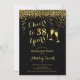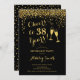 Elegante invitación de fiesta de retiro para hombres y mujeres. Invitar carta en oro negro y falso purpurina. Presenta un diseño de escritura tipográfico elegante, copas de champán y confeti. ¡Salud para la jubilación! Personaliza con tus propios detalles. Se puede personalizar para que se muestre en cualquier año. Invitaciones Zazzle impresas o plantilla digital de descarga instantánea. Perfecto para una elegante celebración jubilatoria.