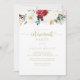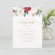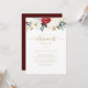 Esta clásica invitación a la fiesta de retiro floral de oro es perfecta para un evento rústico. El diseño se compone de acuarelas blancas, burdeos y flores doradas y bayas de vegetación verde dispuestas en elegantes ramos.