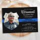 Celebre años de servicio dedicado e invite a amigos y familiares con esta invitación a la jubilación de la policía de la Línea Azul delgada Personalizado. Personaliza con nombre, título, años de servicio, domicilio. Esta invitación de la policía para el partido de retiro es perfecta para todos los fiestas de retiro de oficiales de policía y de retiro de las fuerzas del orden. Ver la recaudación de regalos de fiestas de retiro de la policía, favores del partido y suministros. DERECHOS RESERVADOS © 2020 Judy Burrows, Black Dog Art - Todos los derechos reservados. Invitación del partido de retiro fotográfico Personalizado Lin azul delgado de la policía